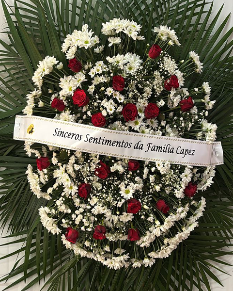 Crisântemos Brancos, Rosas Vermelhas e Gipsofila